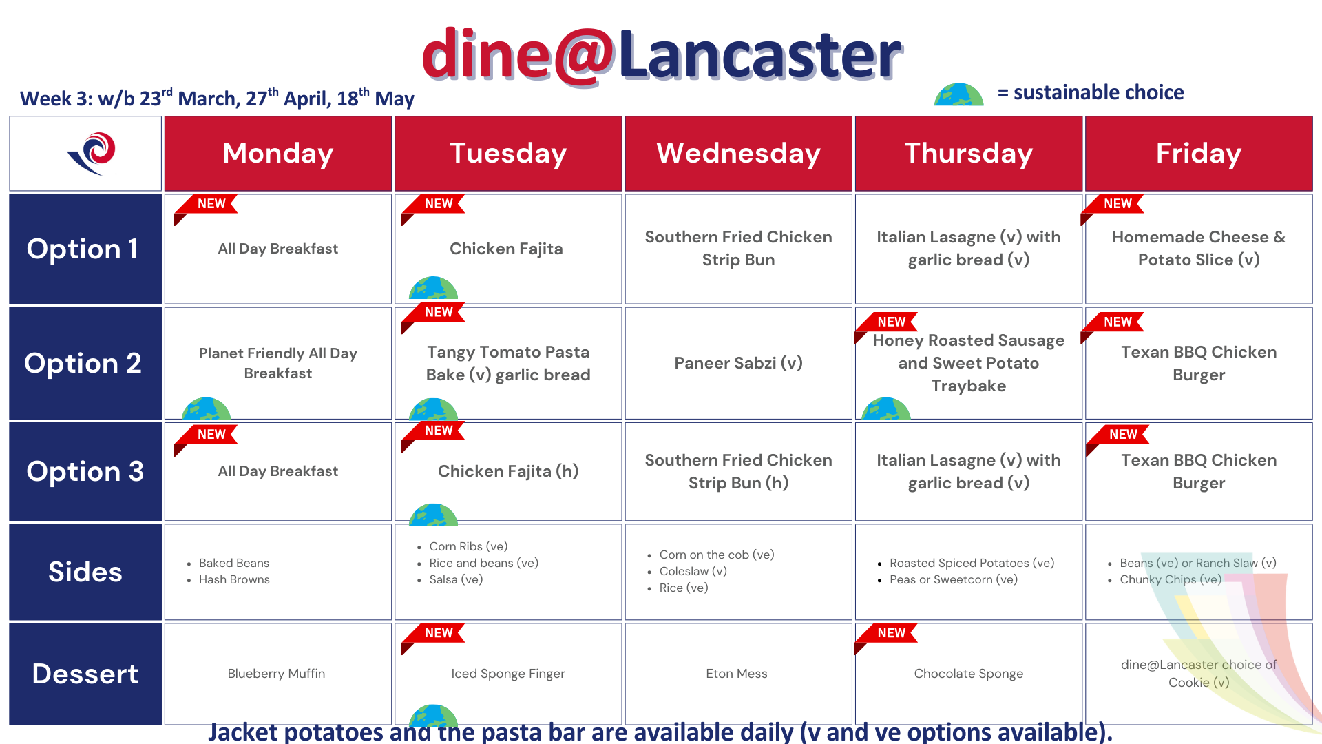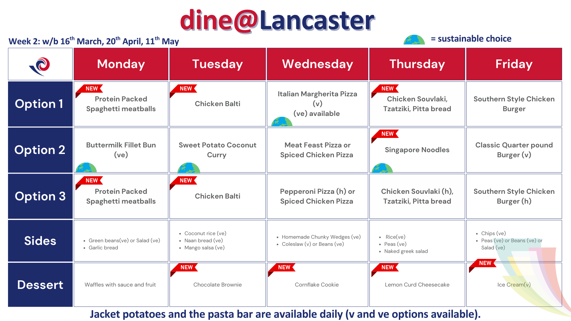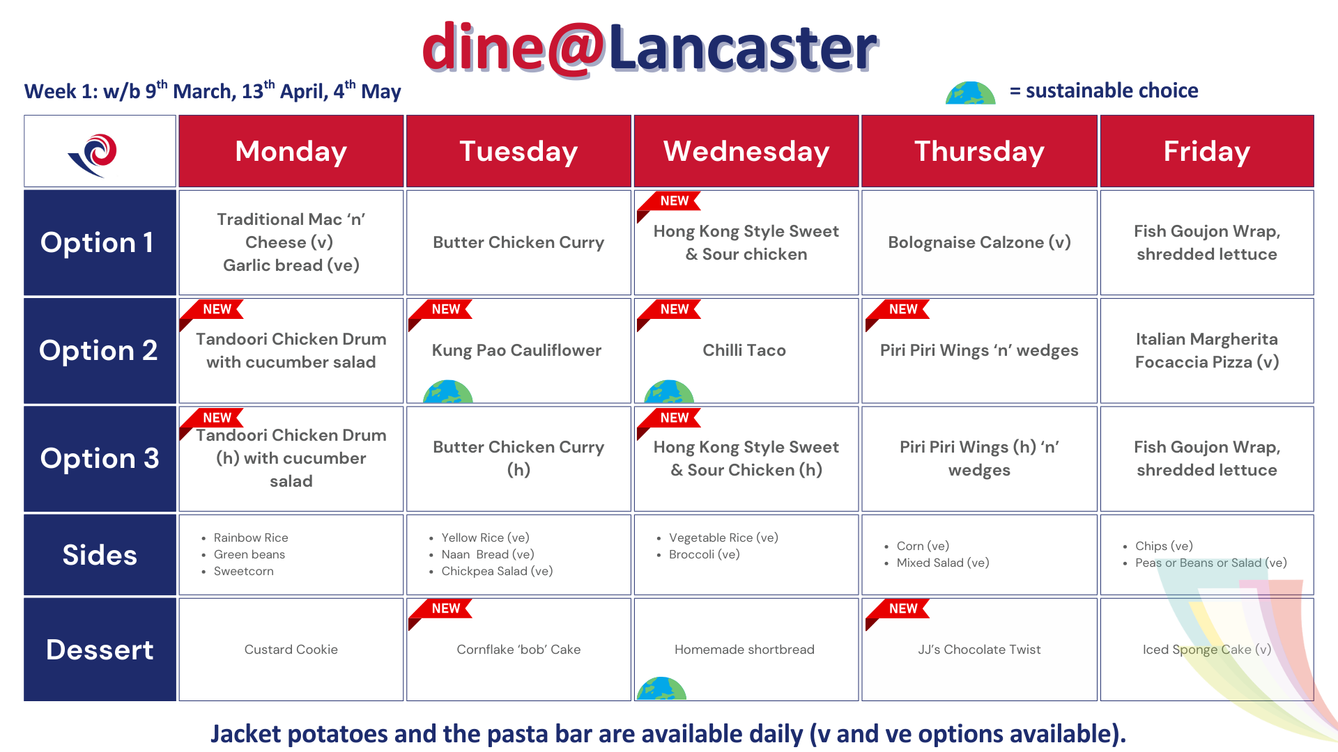 Dishes marked with a planet are the most sustainable choices on the menu, which help us to reduce our carbon footprint.